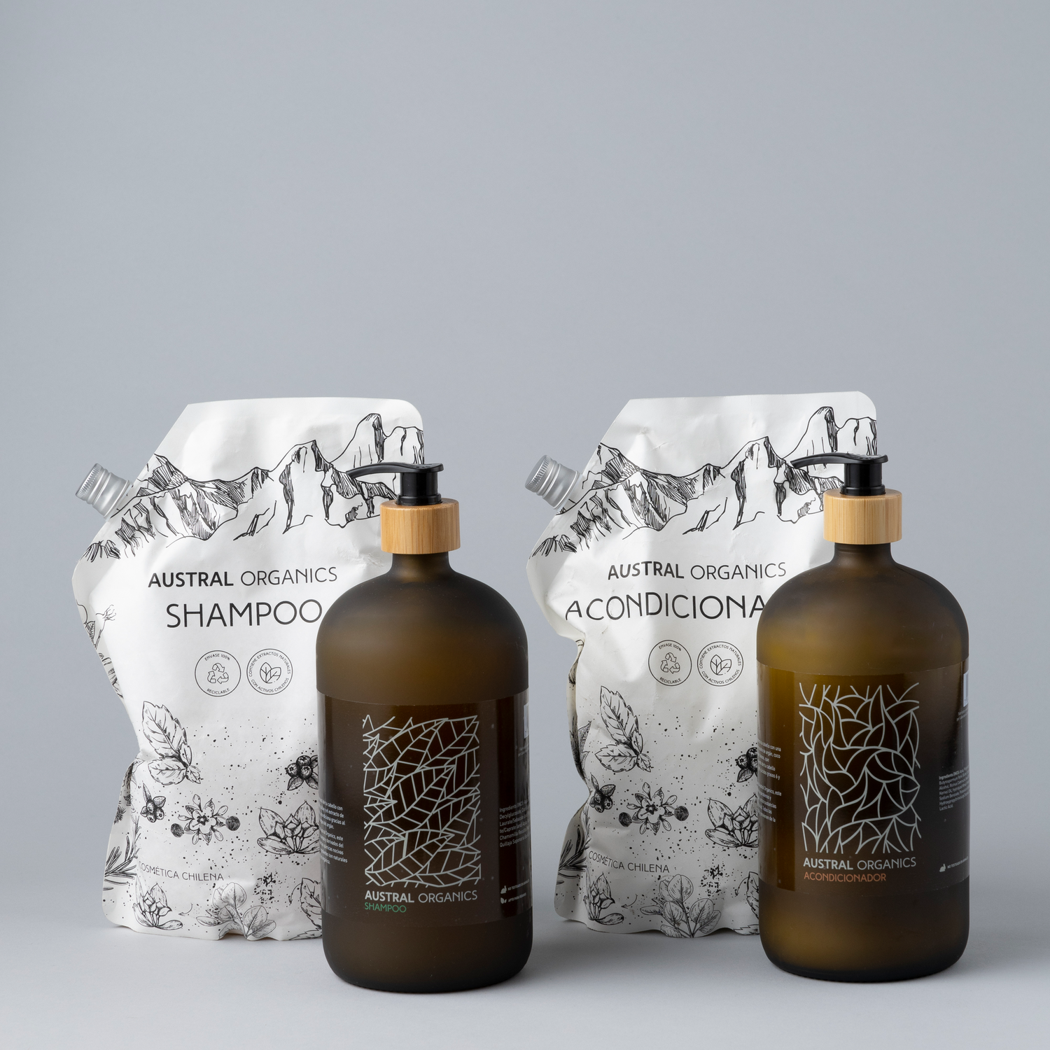 En Austral Organics trabajamos con un formatos ecologicos como lo son nuestras botellas y pomos. Estas viene a ser una solucion ante los plasticos de un solo uso. Nuestra propuesta es que puedes recargar, reutilizar y reciclar tus envases.