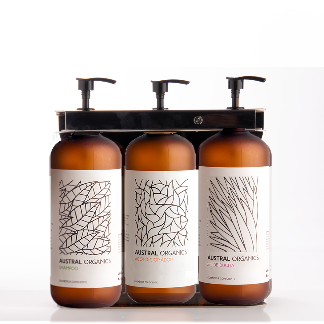 En Austral Organics trabajamos con un dispensador de botellas de acero inoxidable antirobo, que viene a ser una solucion ecologica ante los plasticos de un solo uso.